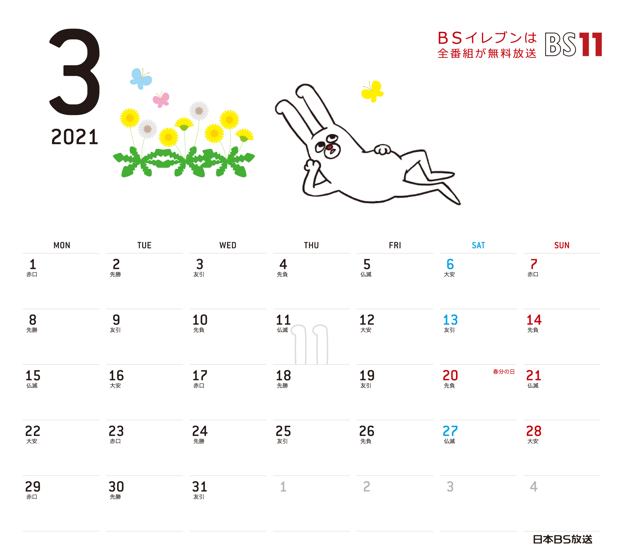 Spデジタルカレンダー21年3月 Bs11 イレブン いつでも無料放送